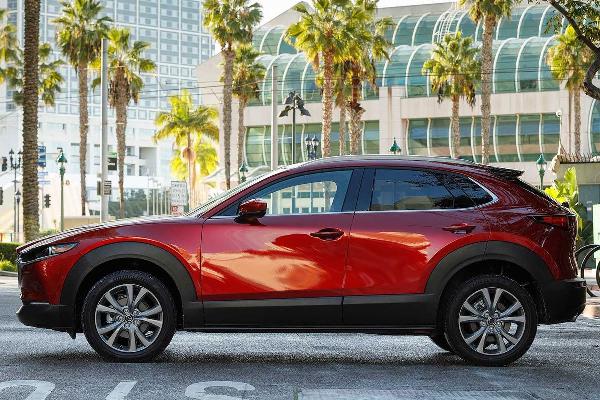 Chạy dọc thân xe CX-30 là bộ la-zăng hợp kim 18 inch dạng cánh hoa 5 chấu kép điệu đà. Cột D vuốt dài ra phía sau không chỉ mang đến vẻ đẹp thể thao như những chiếc coupe, mà còn gia tăng sự rộng rãi cho khoang hành lý.